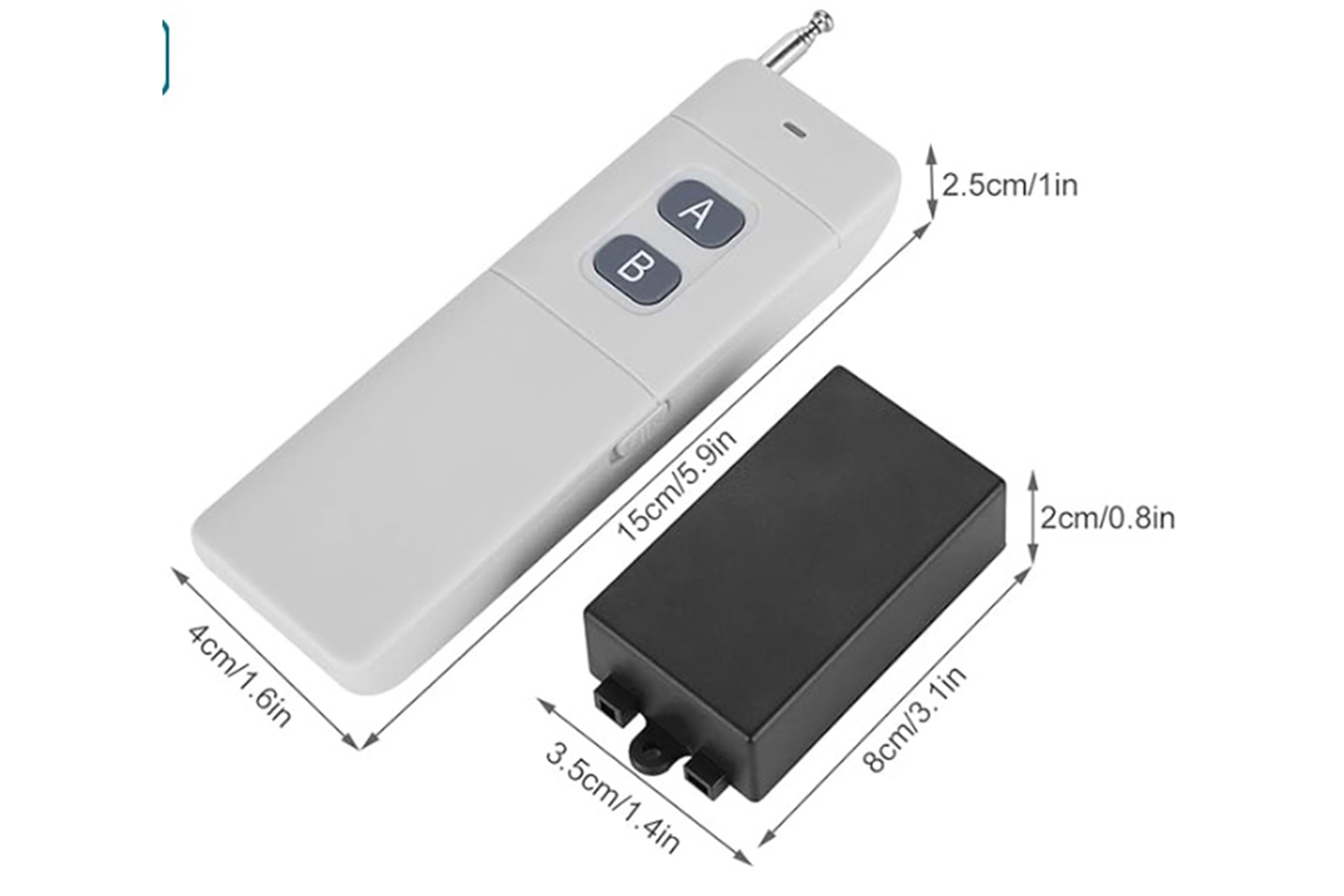 Spesifikasyon: Malzeme: ABS Renk: Siyah(Alıcı) + Gri (Verici) Uzaktan Kumanda Pili: 2 x AA pil (dahil değildir) Kanal: 2 Kanal Uzaktan Kumanda Mesafesi: 0-3000m (Herhangi bir blok ve sinyal karışması olmadan ideal mesafe, blok ve sinyal paraziti ile yaklaşık %10-90 oranında yükselir ve düşer.) Kodlama: Sabit kod, lehimleme Frekans: 433MHz Kod çözme: Sabit kod, lehimleme Güç Kaynağı (Çalışma Voltajı): DC 12V (3V/6V/9V/24V özelleştirilebilir) Statik Çalışma Akımı: ?10mA Çalışma Sıcaklığı: -40? ~ +80? Hassasiyeti: ?-95dB Çıkış Akımı: ?10A Çalışma Modu: atlama şapka anahtarı, jog, kendinden kilitlemeli, kilitlemeli (ayarlanabilir) Çıkış Modu: Ccontact Çıkışı (AC ve DC kontrol edilebilir) DC 12V canlı çıkışa bağlanın Alıcı: 8 * 3.5 * 2cm / 3.1 * 1.4 * 0.8in Uzaktan Kumanda: 15 * 4 * 2,5 cm / 5,9 * 1,6 * 1,0in Paket Ağırlığı: 92g Kodu Öğrenin ve Kodu Kaldırın: 1. Öğrenin: Öğrenme koduna basın .göstergeyi açıp kapatın, parmağınızı gevşetin, uzaktan kumandanın herhangi bir düğmesine basın, gösterge 2 kez yanıp söner ve kapanır, doğru öğrendiğiniz anlamına gelir. 2. Kaldır: Öğrenme düğmesine yaklaşık 8 saniye basın, gösterge kapanır, bu, Kodun doğru şekilde kaldırıldığı anlamına gelir. Paket İçeriği: 1 * 3KM Uzaktan Kumanda Vericisi (Pil dahil değildir!) 1 * Uzak Alıcı Modülü (Kabuk dahil) Not: 1. Pil nakliye sırasında çok tehlikelidir, bu nedenle pili kendiniz satın almanız gerekir. 2. Lütfen manuel ölçüm nedeniyle 0,5-1 inç farka izin verin. (1 inç=2,54 cm) 3. Farklı monitörler arasındaki fark nedeniyle, resim öğenin gerçek rengini yansıtmayabilir.